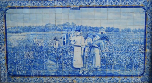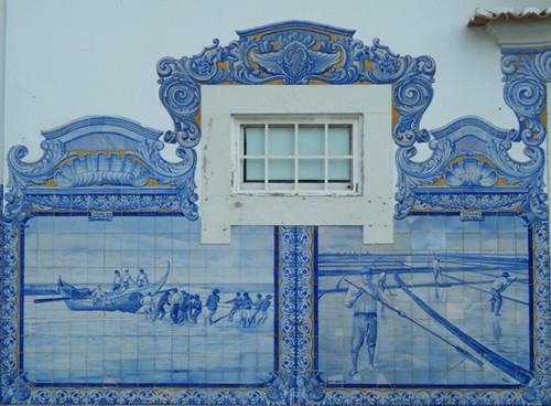 Estes bonitos painéis em azulejo no género figurativo podemos admirar na Estação Ferroviária de Aveiro com a sua fachada revestida de azulejos policromados de azul e amarelo, do início do século XX da autoria de Licínio Pinto e Francisco Pereira, fabricados na Fábrica Fonte Nova.